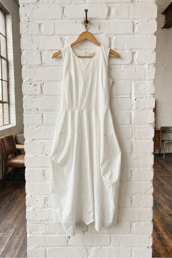 Sleeveless Cotton Poplin Midi Dress